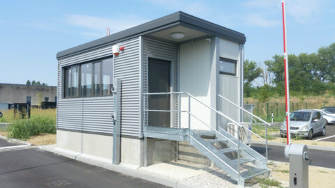 Le pareti lisce mantengono la stessa tecnologia del pannello sandwich coibentato, ma eliminano la microgrecatura ogni pochi centimetri a favore di una superficie più omogenea ed elegante. Rimane solo una sottile linea di giunzione ogni metro circa, ottenendo un’estetica più “architettonica” e minimale, ideale per guardiole, piccoli uffici e strutture più curate.